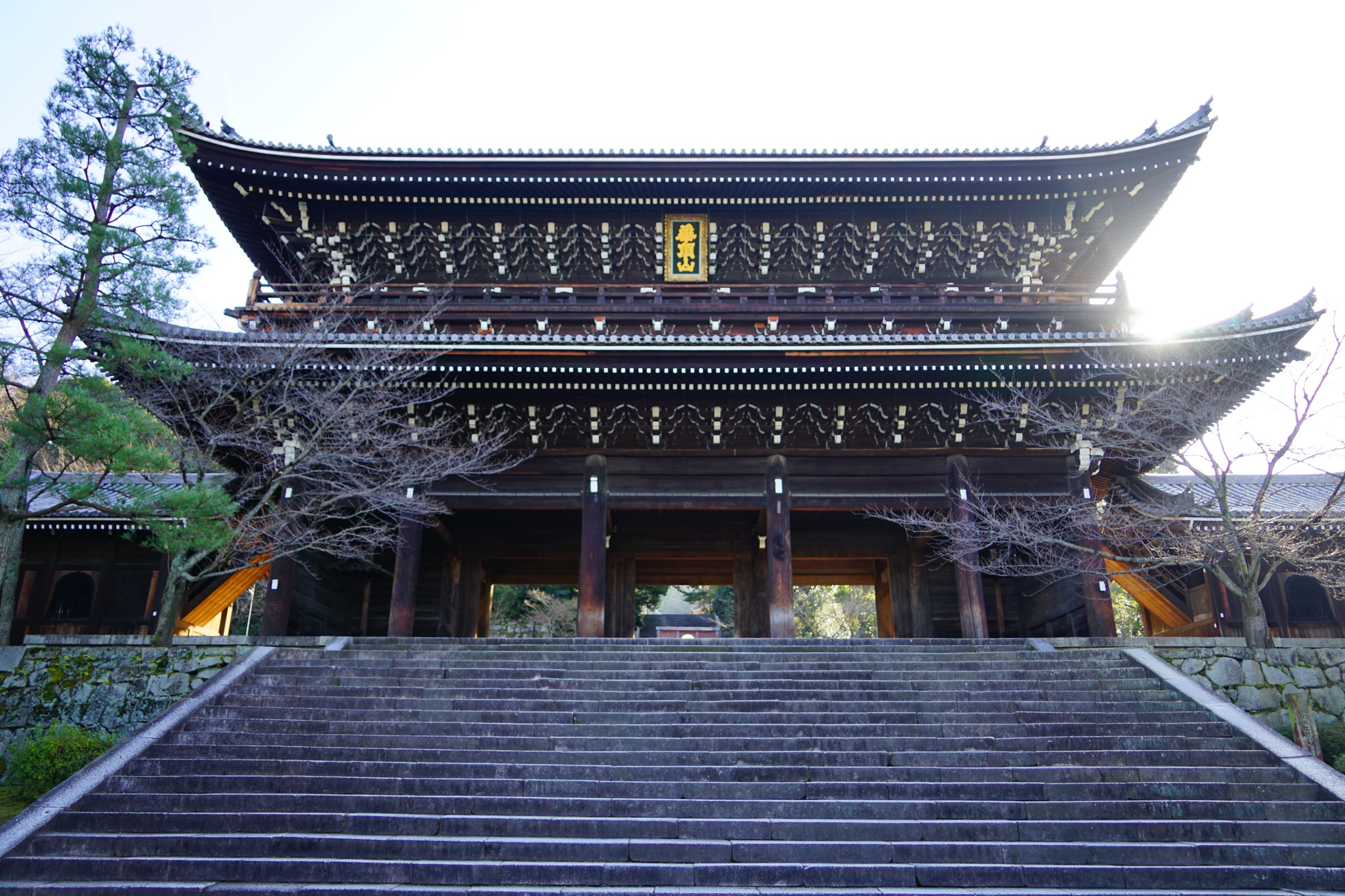四条通から八坂神社を超えると円山公園に出ますが、枝垂れ桜を左に行くと次第に巨大な山門が見えてきます。いつも観光客が多くいる、京都で最も人が集まるあたりです。