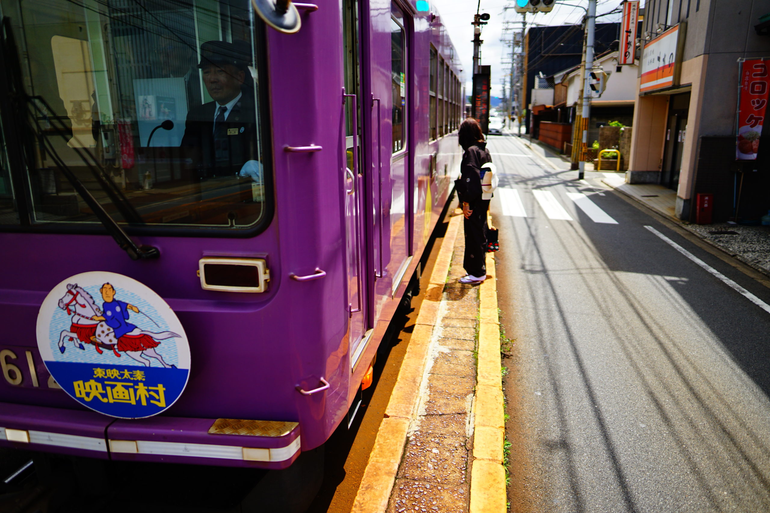 京都ではでかいカメラをぶら下げて歩いても特に気にならないのがいいですね。どうせ観光客ですので。他の街だとなんとなく市街地や繁華街でカメラをぶら下げて歩くのはちょっと気おくれしてしまいます。そんなわけでいつもこの嵐電にカメラをぶら下げて乗っています。