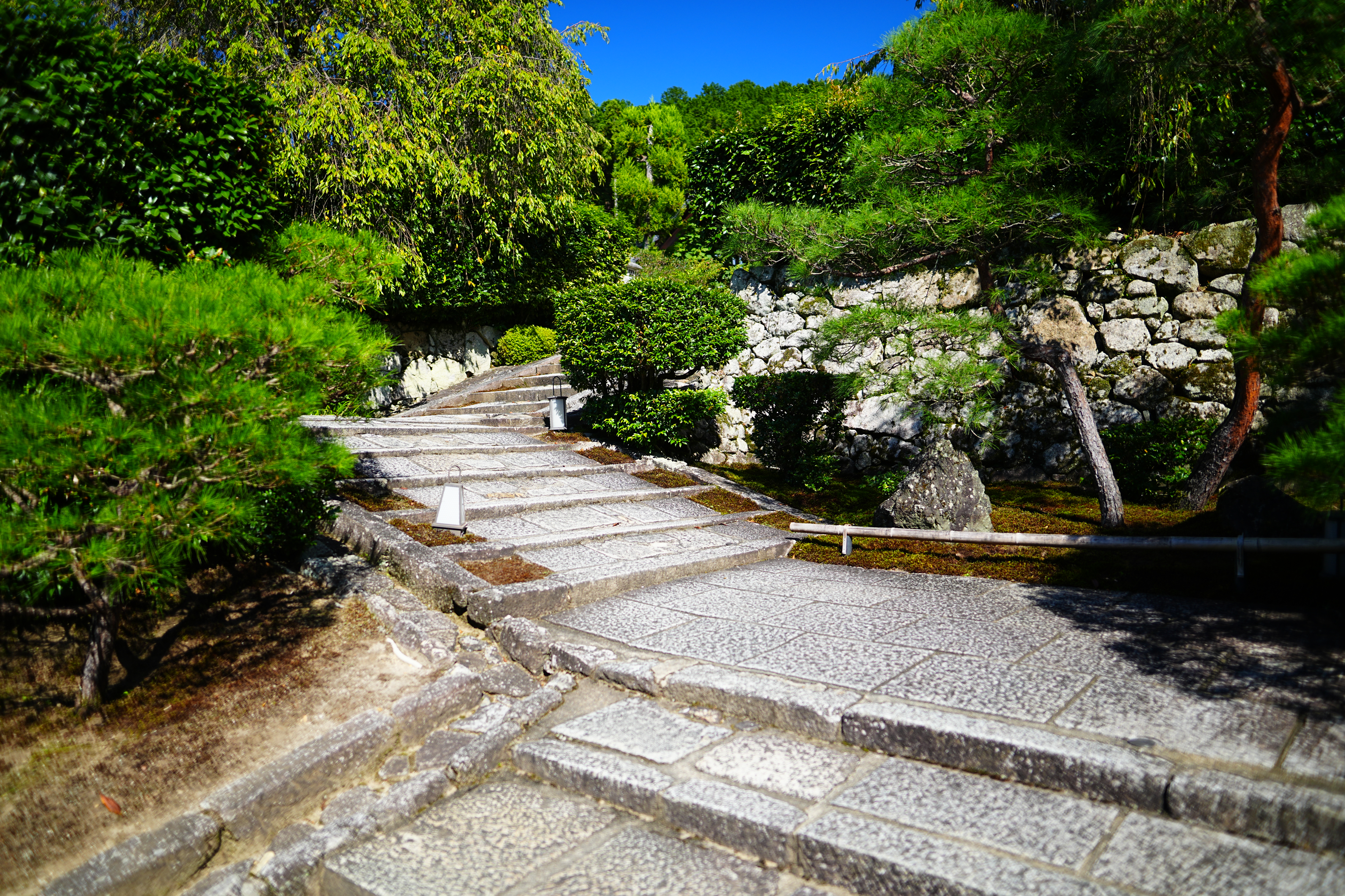 参道の先はクランク状に曲がった石段になっており、この先に現れる驚きの枯山水をもったいぶって隠しているかのようです。