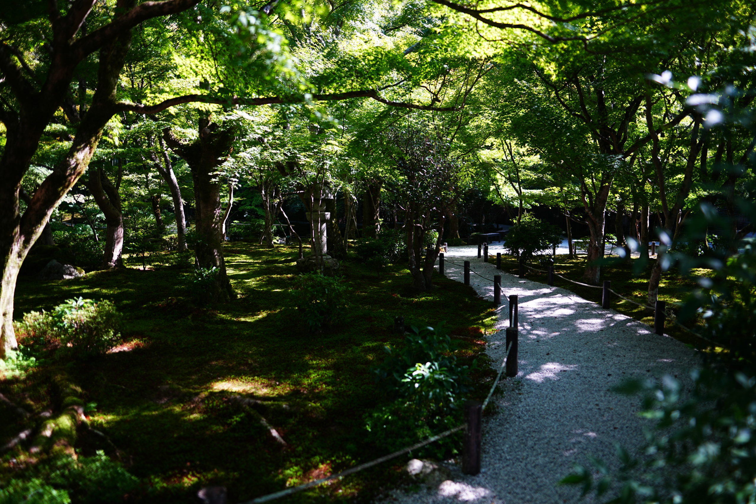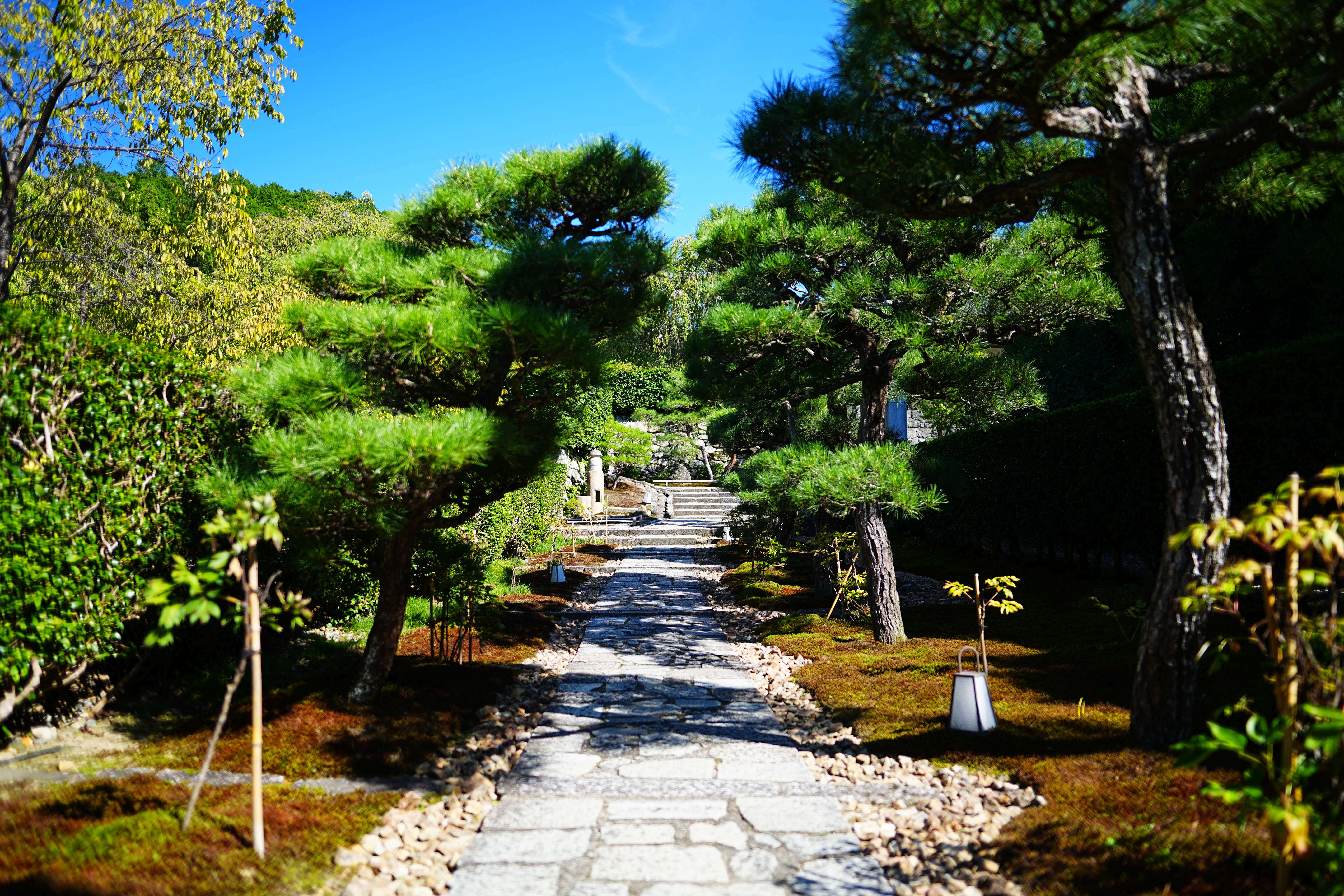 山門を入った後の参道も両側には松などの樹木が茂っており、程よく自然を活かした、あまりキッチリとした整然さを出していない佇まいです。更に洛中の寺院と異なり周りにビルなどが見えず、比叡山へと連なる東山を借景に創建の時代と変わらぬ景色を感じさせてくれます。