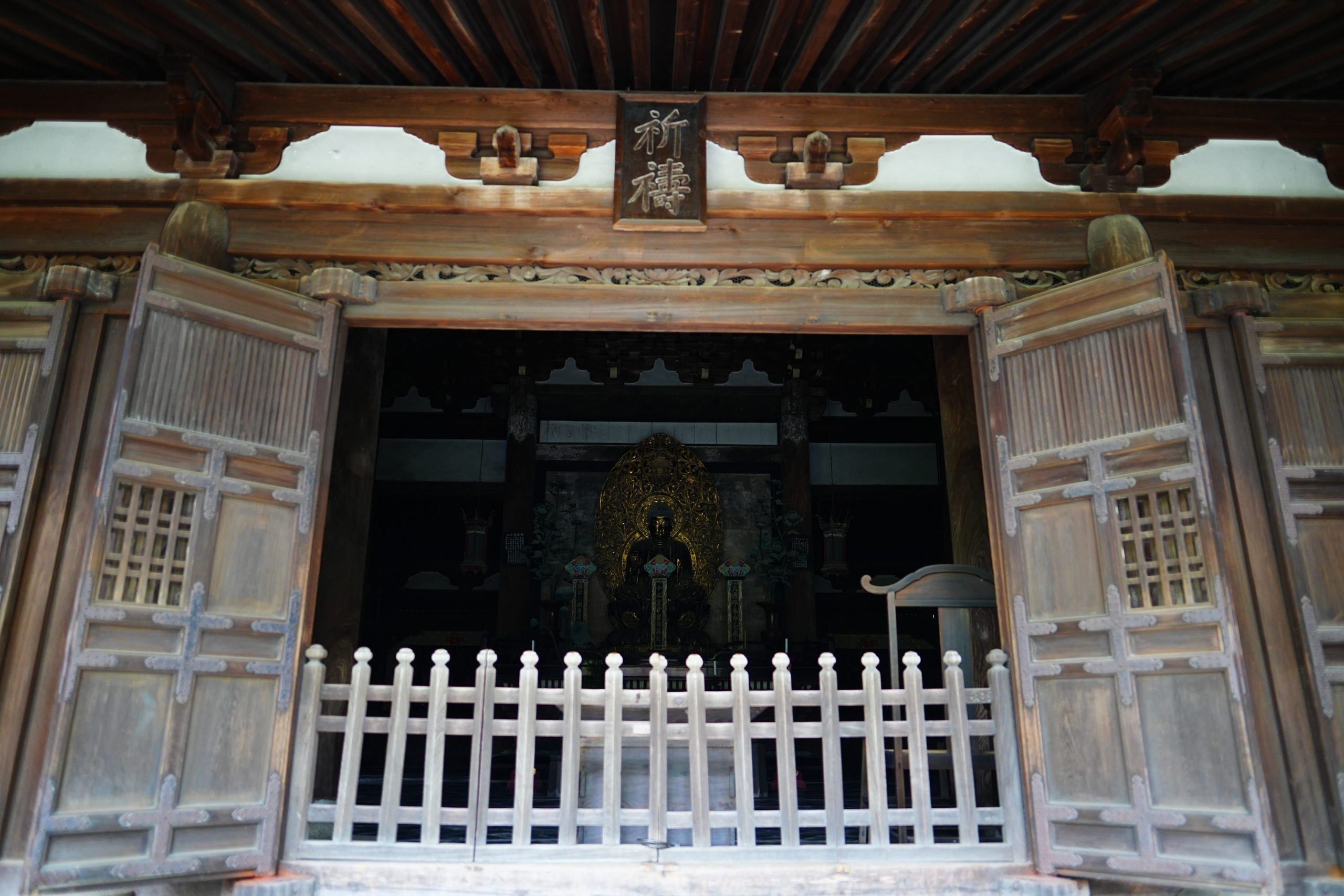 別名「金毛閣」とも呼ばれる朱塗りの楼門が大徳寺の三門です。楼門というのは門の上部空間がお堂のようなしつらえになっている2階建ての門を言います。この2階部分は千利休の寄進によって後に増築されたものであり、現在は重要文化財に指定されています。大徳寺の境内で最も古い建物のひとつです。