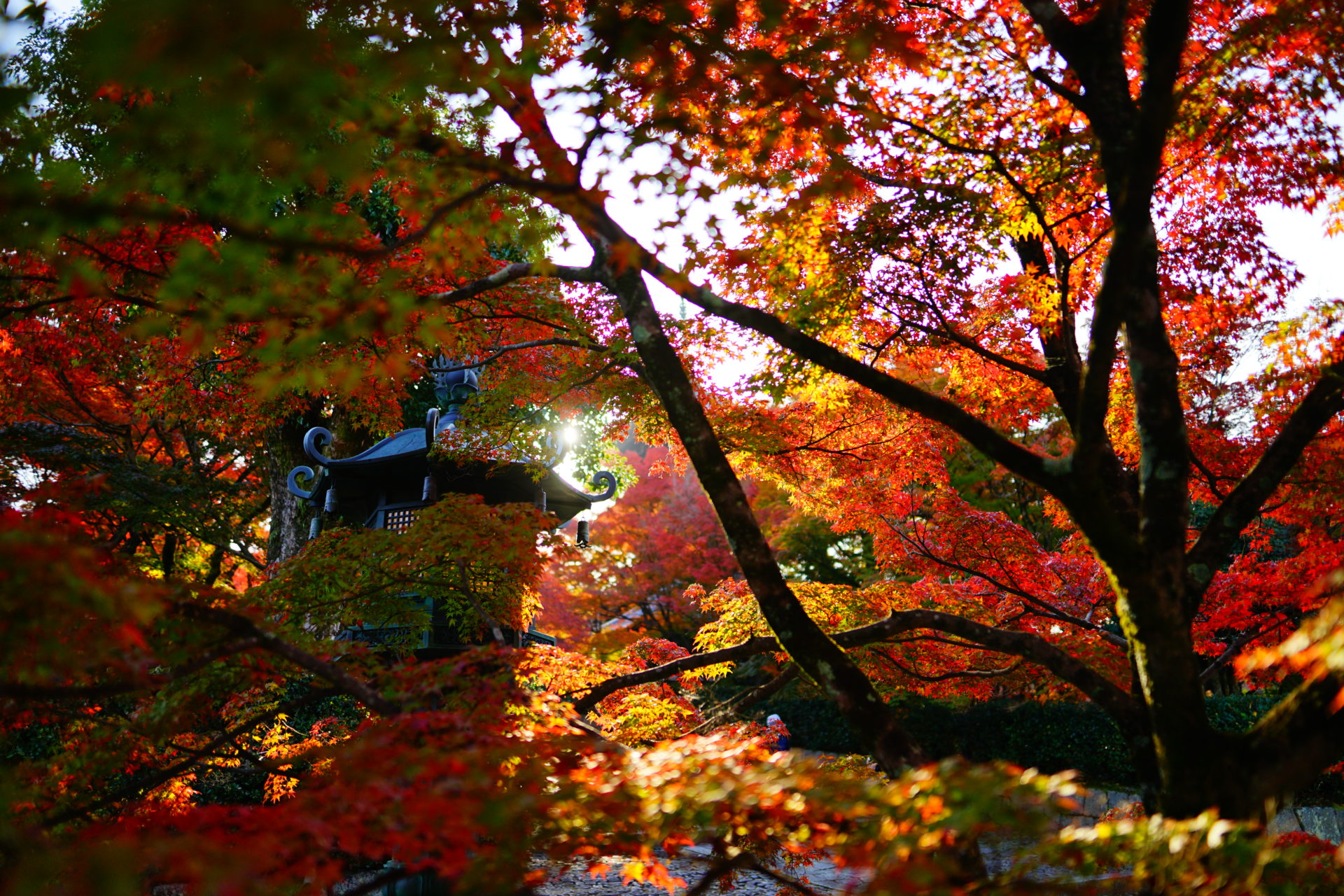 このお寺の最大の楽しみはこの紅葉ですが、参拝の際にはその日の一番最初に、できれば8時頃には着いて静粛の中に佇む、逆光で輝く紅葉を見物したいものです。とにかく素晴らしい光景に出会えるので、この時間にわざわざ来てもそれ以上の価値があります。