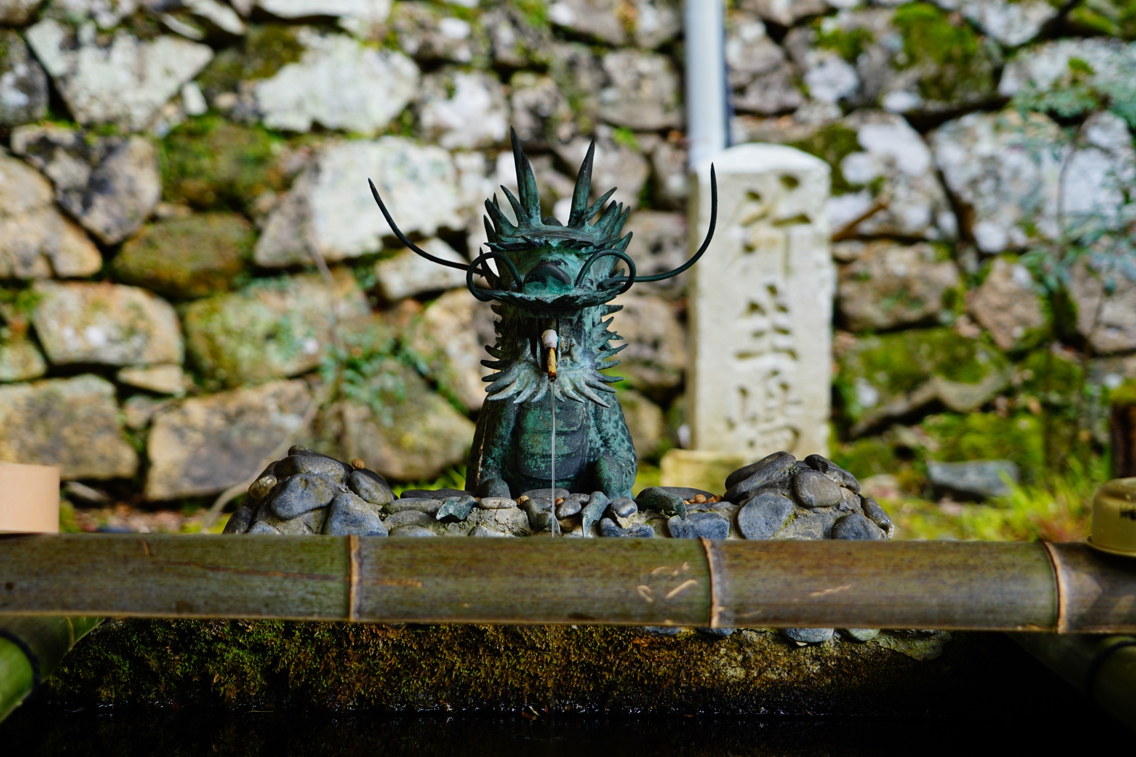 ちょうどここに手水舎がありますので、心身を清めて行きたいと思います。ふと気が付くと精悍な顔つきの龍が、全てお見通しと言わんばかりに物静かに佇んでいます。