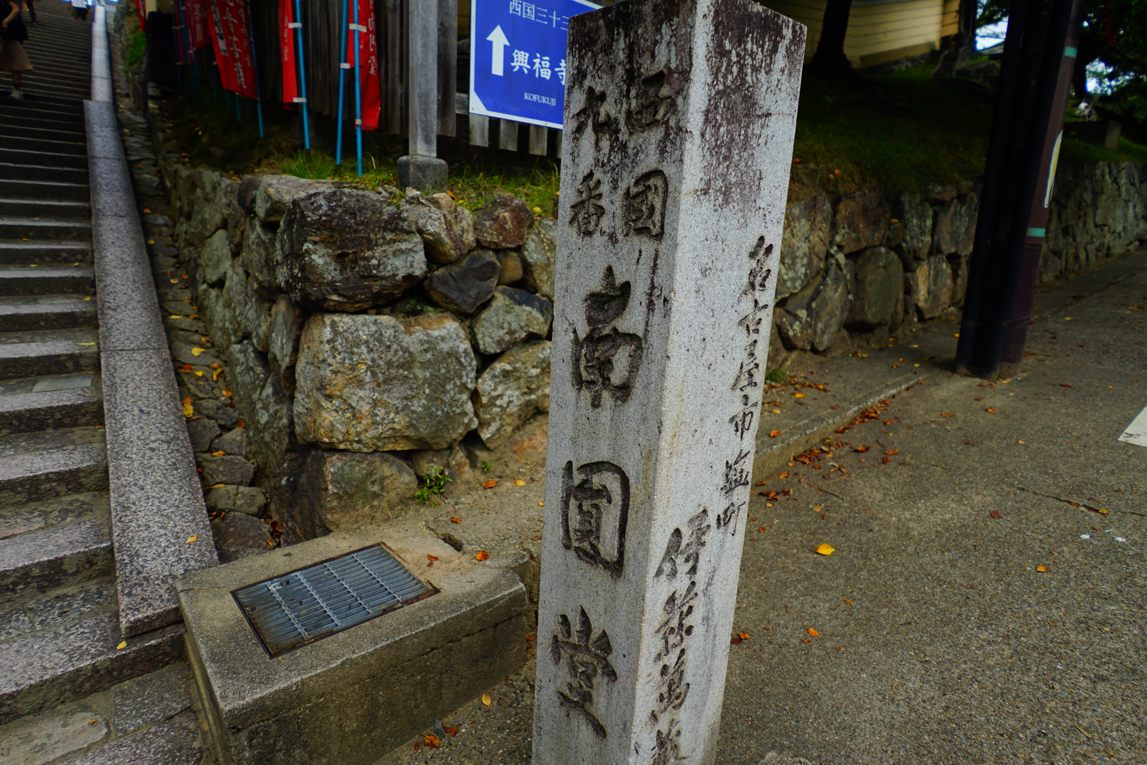 西国三十三所 観世音菩薩巡礼、第九番札所は興福寺 南円堂です。こちらアクセス難易度は★(星ひとつ)です。近鉄奈良線 近鉄奈良駅から、東向き商店街を抜けて三条通りに出たら左に折れてすぐです。ちょうど右手に猿沢池が見えたあたりで左側の石段を登るともう南円堂と藤棚が目前に現れます。