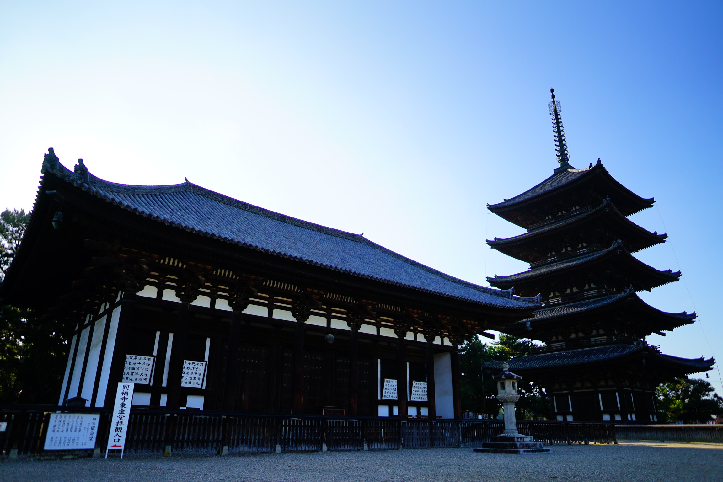 境内は拝観料なく自由に入ることができます。(東金堂、国宝館は別途拝観料が必要です。)西国巡礼の札所である南円堂(重要文化財)はこの興福寺のお堂のひとつであり、広い境内にはこの南円堂のほかに五重の塔、三重の塔、東金堂、北円堂と全て国宝のお堂がある他、平成最後の年に天平時代の姿で再建となった中金堂、それにあの有名な阿修羅像を収蔵する国宝館など見どころの多い大寺院です。