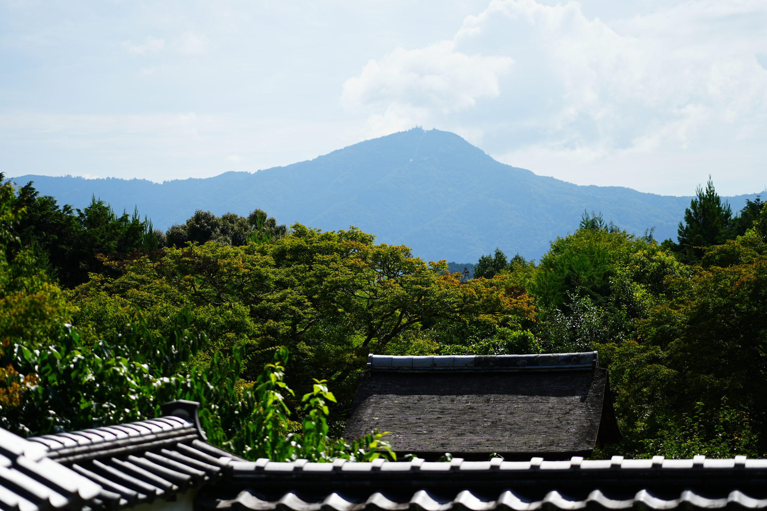 枯山水の庭の遠景には遥か比叡山を臨む事もできます。そうするとこちらも天台宗のお寺かと早とちりしそうですが、こちら正伝寺は正式には正傳護国禅寺と言い、臨済宗南禅寺派の禅寺です。臨済宗の宗祖である栄西(ようさい)は比叡山で修行しているので、そう考えると意味深いものを感じます。