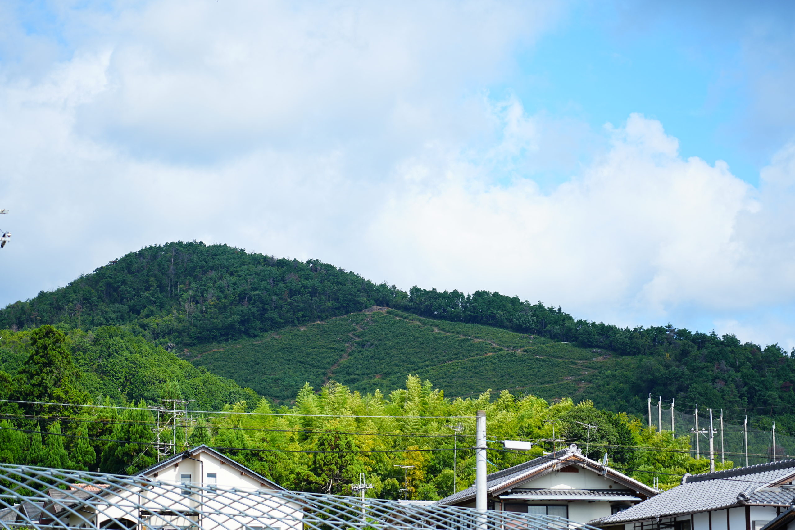 アクセス方法で一番スマートなのはバス利用です。京都駅から京都市バス9番系統に乗車し堀川通をずんずんと北上して45分ほどの乗車ののち神光院前バス停下車、徒歩10分ほどです。バス停を降りて山の見える方向に向けて歩いていくと船形の送り火の火床が見えてきます。更に山の際に沿って歩いていると山門が有りました。仁王門でも楼門でもない、質素なこじんまりした門をくぐって入山します。