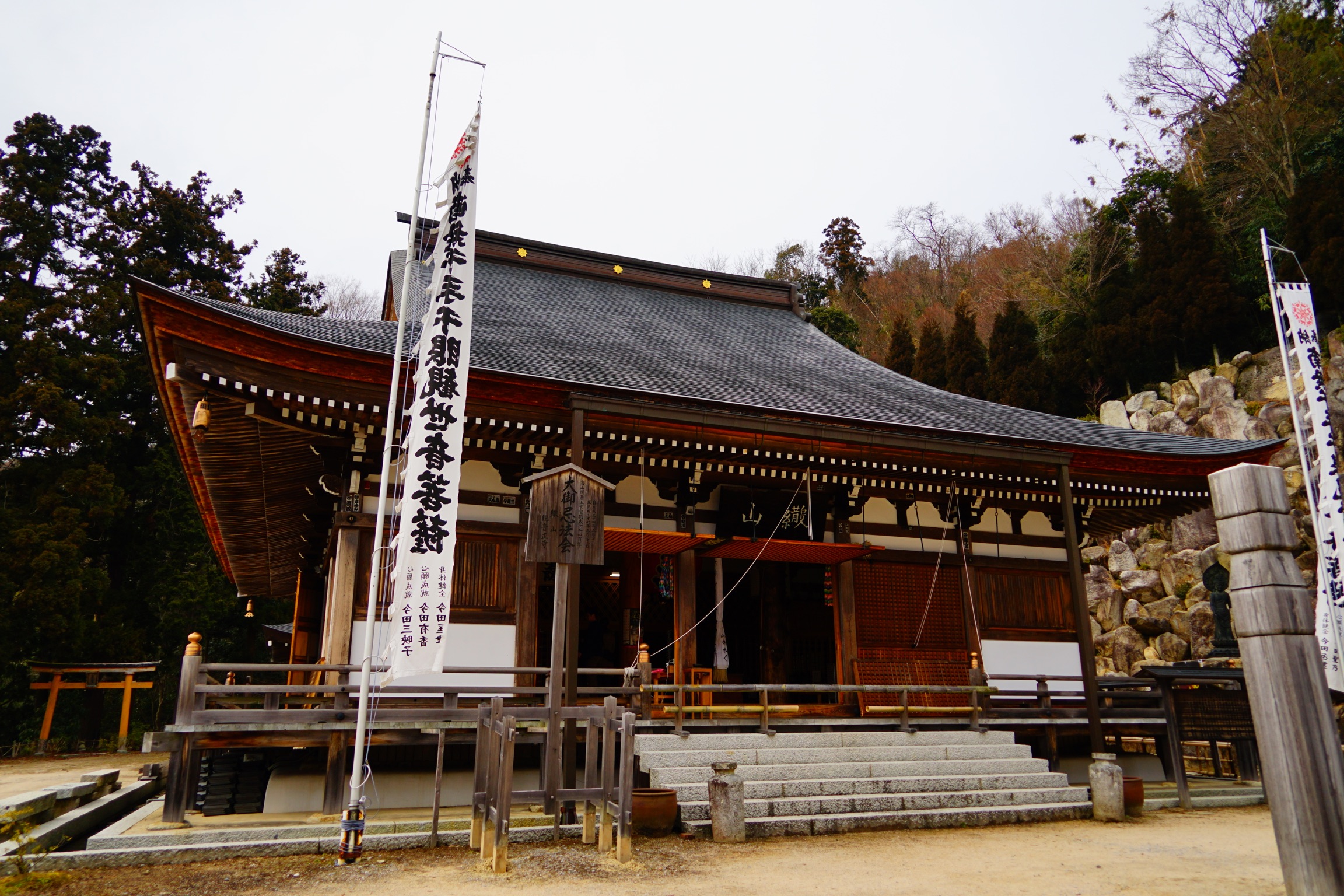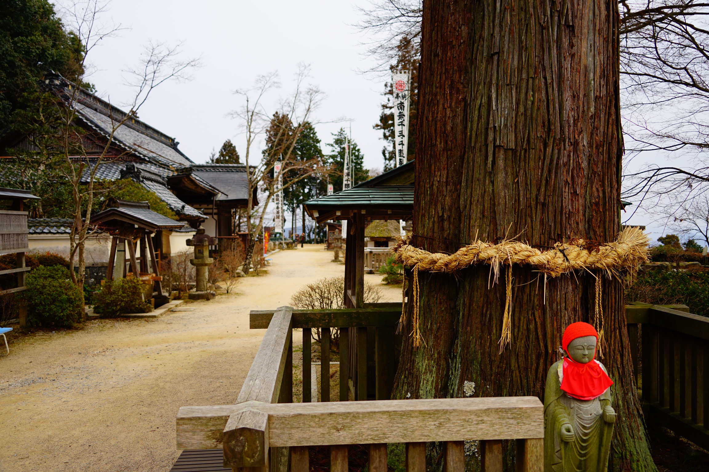 西国三十三所観世音菩薩巡礼 第三十二番札所は繖山 観音正寺(きぬがさざん かんのんしょうじ)です。アクセス難易度は★★★★★です。午前中に参拝した竹生島宝厳寺からの続きで、彦根駅から4駅戻って能登川駅で下車、近江鉄道バスの八日市駅行きに乗車し15分ほどの「観音口バス停」で下車します。観音口バス停といっても観音寺はこの近くではなく、ここから山道を1時間弱かけて登る必要があります。とりあえずバス停から南西方向に住宅地を200mほど歩くと結神社(むすびじんじゃ)があり、この境内の左手に登山道入り口があります。ここから登山道に分け入って行きますが、ほどなくして金網の柵があり扉が閉まっていますが鍵はかかっていないので開けて進みます。動物よけの柵なのでしょうか。開けたあとはきちんと閉めて行きたいと思います。