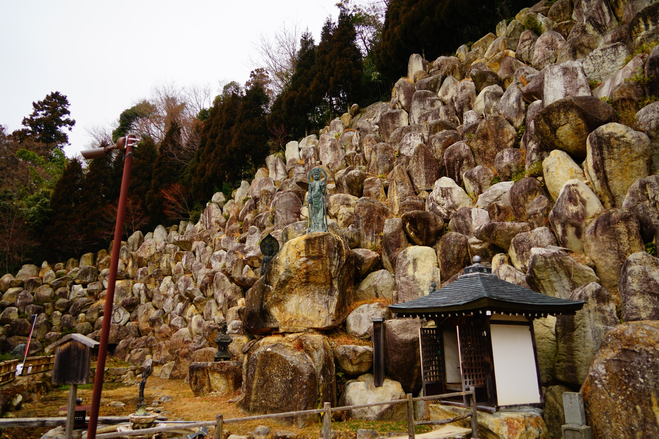 観音正寺は、かつてこの場所に城が築かれた事により繁栄と荒廃を繰り返してきました。現存する本堂も平成時代に火災にあった後の再建です。御本尊もそのときに新たに彫刻された総白檀(びゃくだん)造りの千手観世音菩薩です。こちら、本来は輸出禁止のところをインド政府の特別の許可を得て輸入した白檀を使用しています。想像していたより大きな像であり、お堂の中が白檀のあの独特なワックスのような匂いで満ちています。ほんのり笑みを浮かべて、慈悲深い印象の観世音菩薩です。