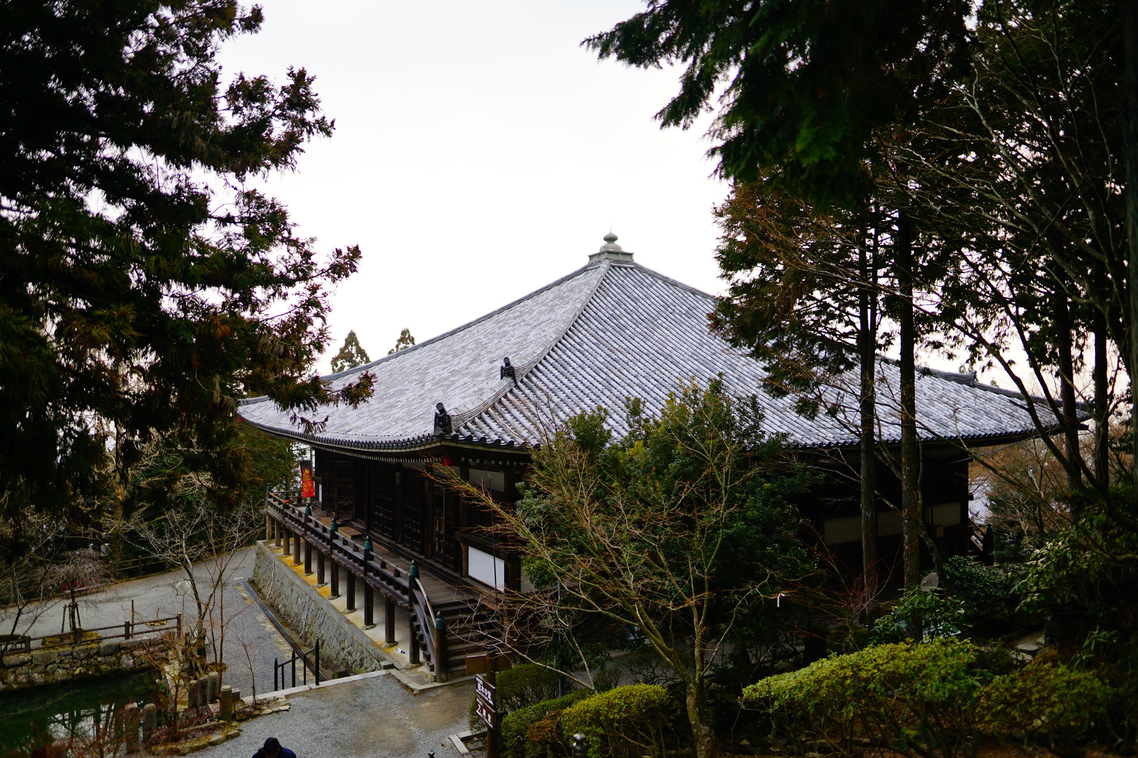 ここから緩やかな坂道をゆっくりと登って行くとお堂が次々と現れます。道沿いに行くと最初に見えるのが薬師堂ですが、このお堂の向こうに見えるのが西国の札所本尊が安置されている大講堂です。