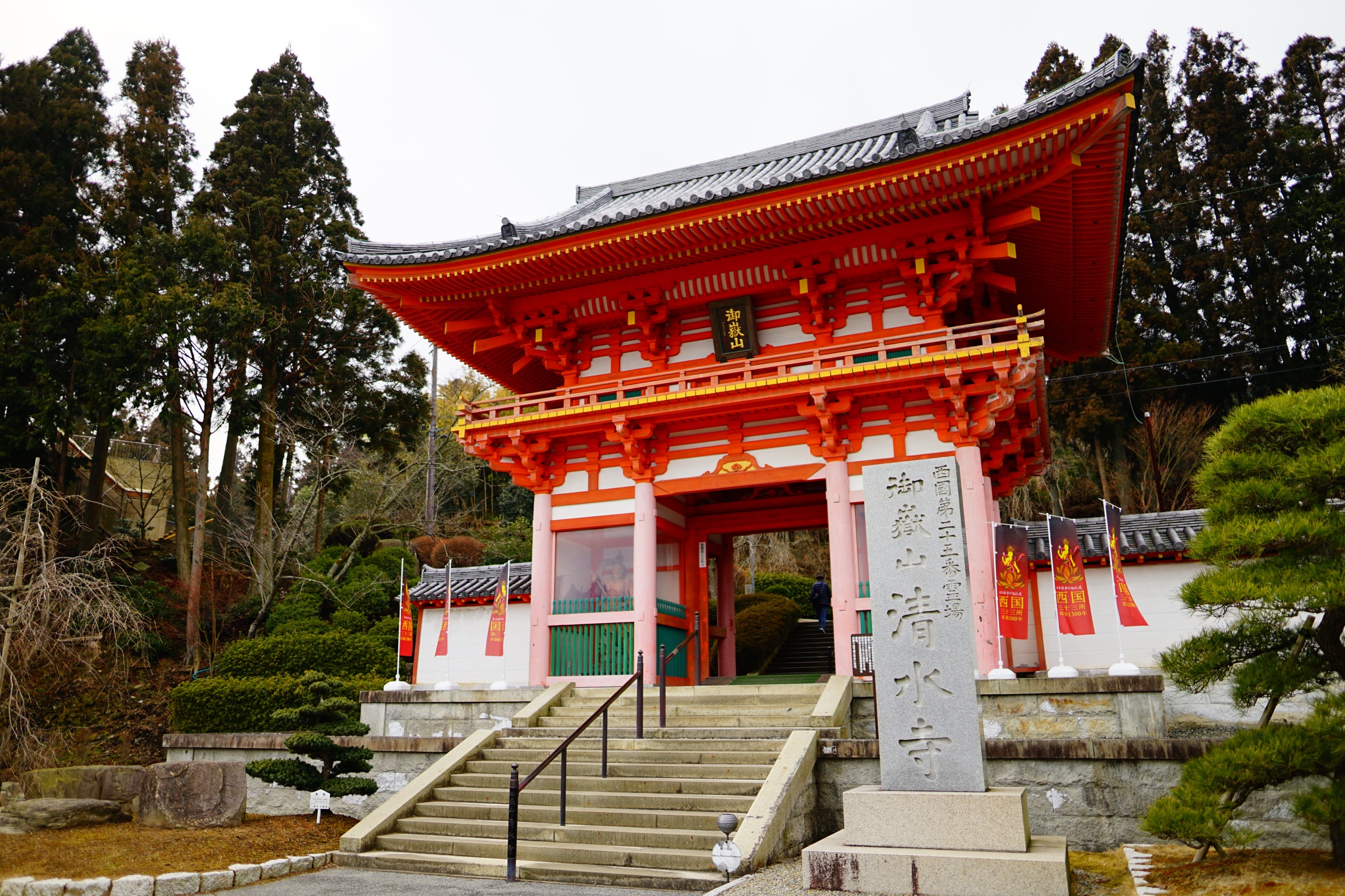 西国三十三所観世音菩薩巡礼第二十五番札所は御嶽山 清水寺です。アクセス難易度は★★★★(星四つ)です。JR福知山線(宝塚線)の相野駅から神姫バス清水寺行きに乗車し、40分ほどの乗車で清水寺三門の前まで行けます。バスは一日に2便しか無いため時刻表をご確認頂いたうえでお出かけ頂きたいと思います。平日、休日共に10時20分、12時50分の2本です。