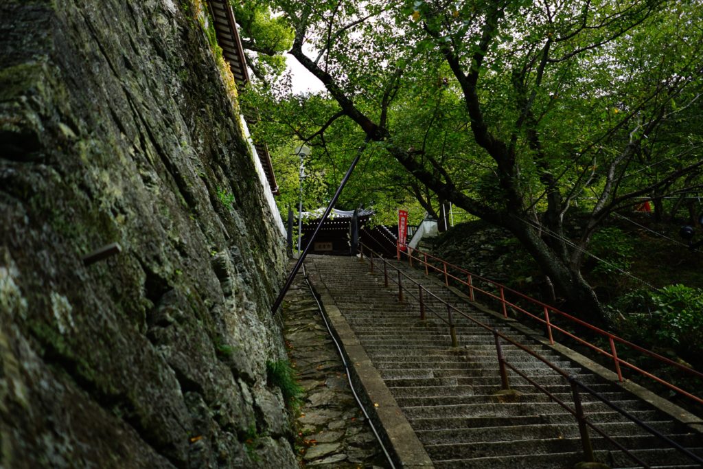 西国三十三所観世音菩薩巡礼、第二番札所は紀三井寺(きみいでら)です。アクセス難易度は★(星ひとつ)です。JR紀勢本線(きのくに線)の紀三井寺駅から徒歩で行けます。紀三井寺というのは通称で、正式には紀三井山金剛宝寺護国院と言います。紀州にある三つの井戸があるお寺という事から来た名前です。駅からの道のりはどこにでもあるような地方の宅地ですが、三門が見えると急に風情ある雰囲気に包まれます。高台にあるゆえ、結構な階段を登りますが両側に塔頭寺院や寺名の由来となった井戸などがあり、また苔むした石垣がなんとも言えない情緒ある景色で、シャッターが進んでしまいます。