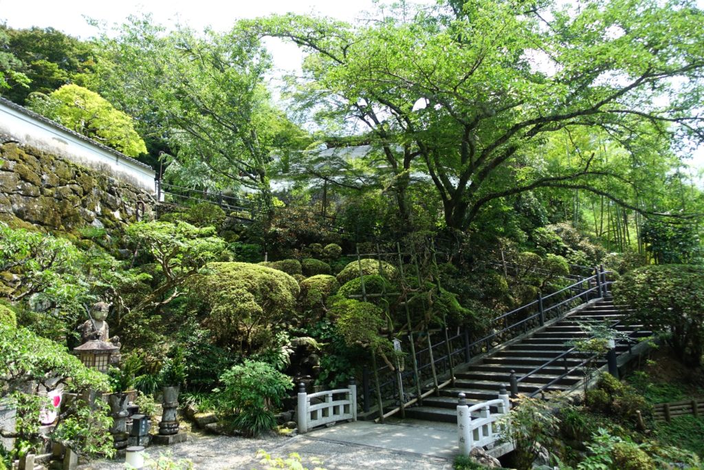 岡寺御詠歌、けさ見れば つゆ岡寺の庭の苔 さながら瑠璃の 光なりけり
