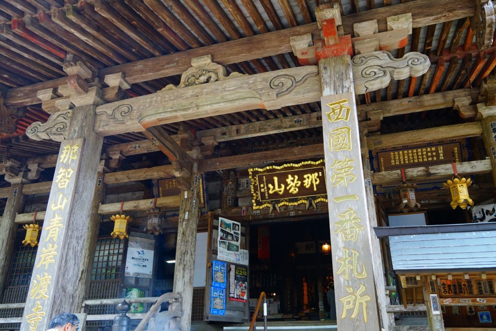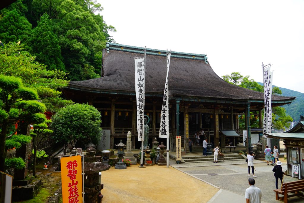 正式には、那智山 青岸渡寺。創建の時期などはあまりにも古過ぎてしっかりとしたことがわかっていないですが、仁徳天皇の4世紀頃にインドの僧、裸形上人が那智の滝で修行したのがはじめとされています。平安時代になってから西国三十三所の中興の祖、花山法皇がこの山にこもって修行されたことから、ここを札所一番に定めたということです。